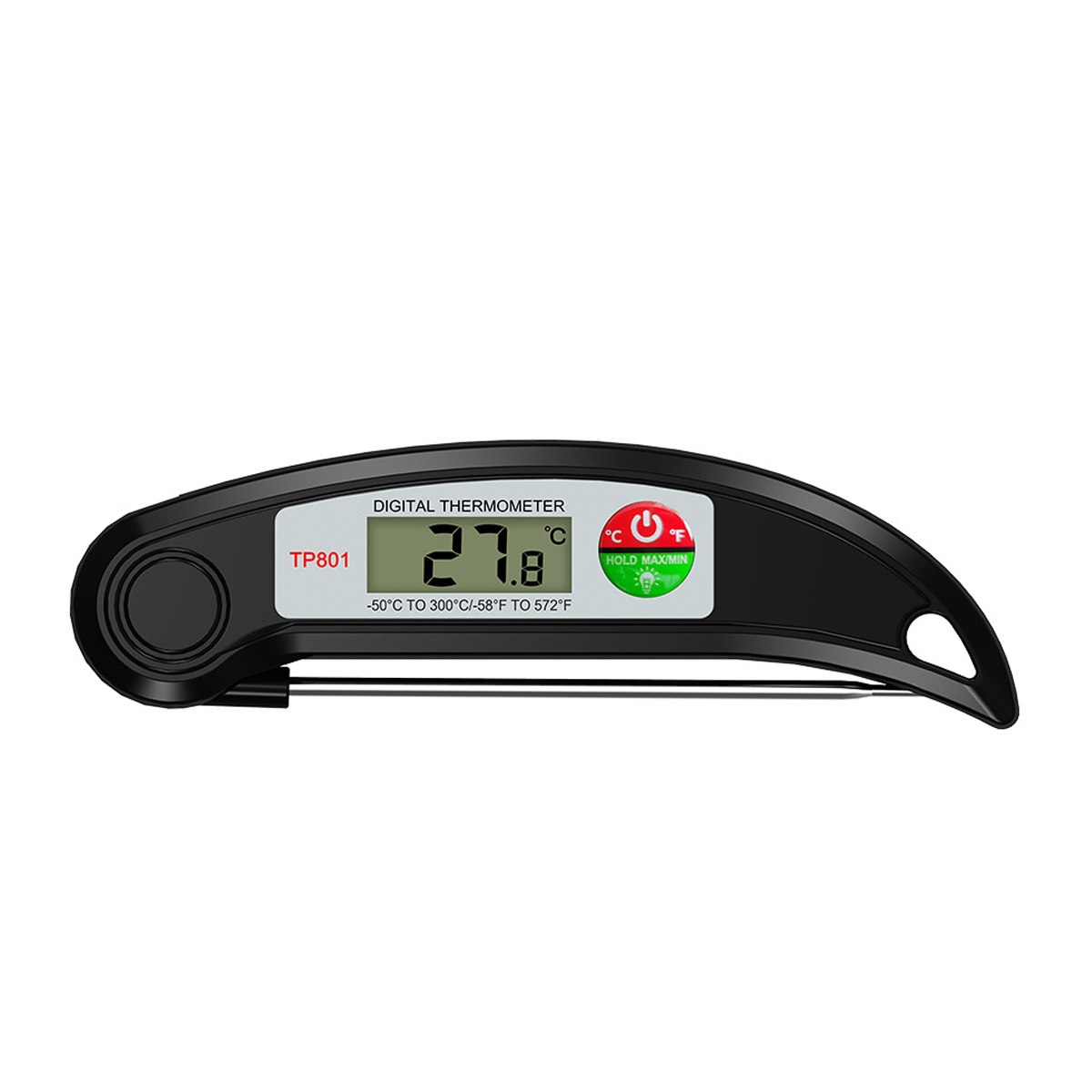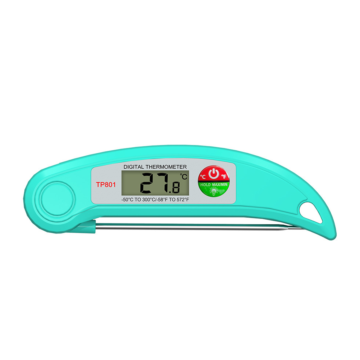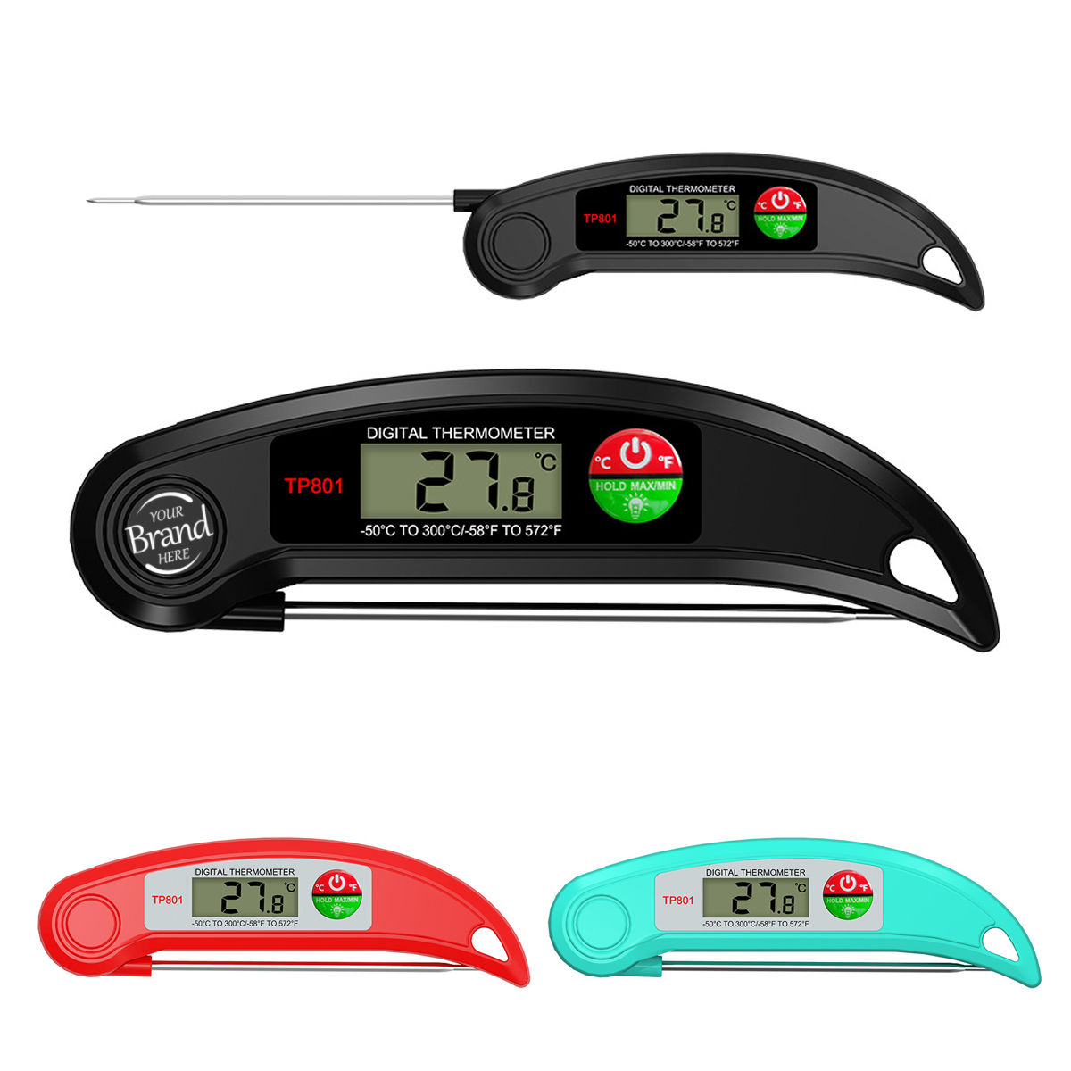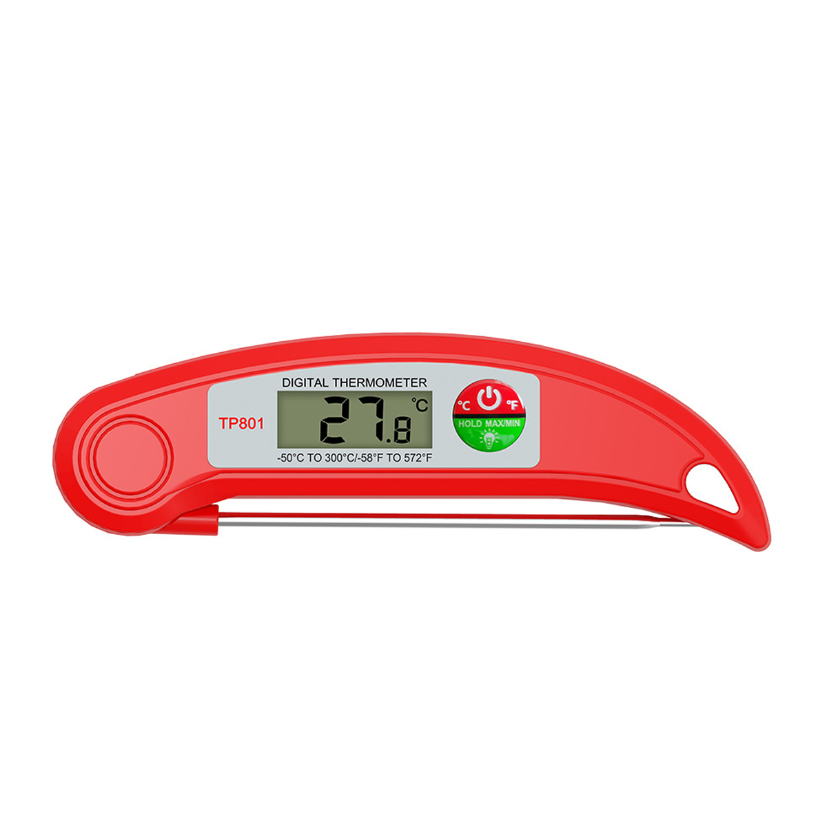 Made of ABS and stainless steel, our digital food thermometer for cooking is perfect for meats, liquids and candy making. Kitchen thermometer uses an advanced meat thermometer digital interface to accelerate and stabilize clear and precise readouts. The large hanging hole make storing it a snap. What is more, the ergonomic handle offers a comfortable grip, letting you enjoy every step of cooking! No more under-cooked food and stomach hurts. Measured 6.20"*1.80"*0.87". Red,black and green colors for your choice. Customize your logo or brand name on the front to boost your brand awareness!